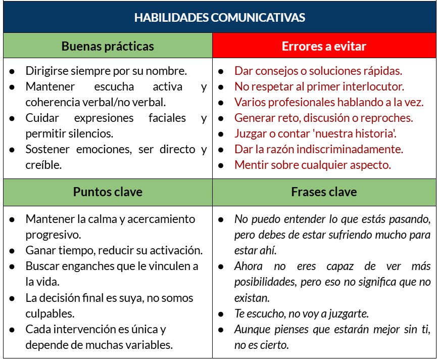 Esto hay que decirlo claro para que nadie se equivoque de enfoque. Una tentativa suicida inminente no es prevención. No es terapia emocional. Eso hay que hacerlo antes o vendrá después, si todo sale bien, y lo harán sanitarios y especialistas. Nosotros acompañaremos emocionalmente y actuaremos para intentar salvar su vida, dentro de lo posible.